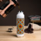 Überall, wo Sie hingehen, können Sie eine isolierte Wasserflasche mit einer inspirierenden Botschaft und einem wunderschönen Design mit Fotos fröhlicher Sonnenblumen genießen, umgeben von Rändern, die aus den faszinierenden Mustern der Baumrinde stammen.