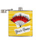 Whimsikales Design gezeichnet in einem Retro-Stil mit einem lustvollen Fansouvenir aus einem spanischen Urlaub auf einem goldgelb gestreiften Hintergrund. Ein individualisierbares Design in Schwarz, Weiß, Rot und Gelb für Sie, um mit Ihrem eigenen Text, Bildern und Ideen zu personalisieren. Ein originelles digitales Kunstbild.