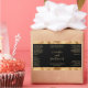 Dieses elegante Produktetikett für Kosmetikflaschen weist einen schwarzen Hintergrund mit einem Imitat aus Goldfolie auf. Dieses Label enthält Platz für Ihren Produktnamen, Firmennamen, Produktgewicht, Inhaltsstoffe, Anweisungen, soziale Medien und Geschäftsadresse.