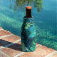Diese Flasche wird cooler in einem blauen tropischen Palmendruck gezeigt. Passen Sie dieses Objekt an und fügen Sie es hinzu oder kaufen Sie, wie es ist.
