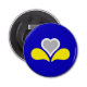 Knopfflaschenöffner mit Design mit der Flagge der Region Brüssel-Hauptstadt von Belgien, blaue Flagge mit gelber, grauer und weißer Schwertlilie