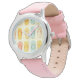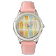 Kinderuhr aus Edelstahl mit rosa Lederarmband