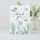 One-Der the Sea 1st Birthday Ocean Animals Dankeschön Card, Schicken Sie eine Dankeschön-Welle mit diesem bezaubernden "One-Der the Sea" Ozean-Thema danke Ihnen Karte! Diese Karte ist ideal, um den ersten Geburtstag Ihres kleinen Kindes zu feiern. Sie bietet charmante Meerestiere wie Schildkröten, Wale, Delphine, Fische und Korallen, alles Set vor einem weichen pastellfarbenen Untergrund. Die spielerischen Schriftart und die süßen Meeresdarstellungen machen es zu einem perfekten Spiel für Ihr Party im Meer oder im nautischen Bereich. Personalisieren Sie sich mit dem Namen Ihres Kindes und einer herzlichen Botschaft, um den Gästen für ihre Liebe, Geschenke und dafür zu danken, dass Sie Ihren kleinen Tag wirklich magisch machen.