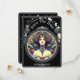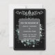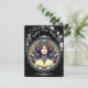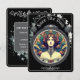 Save the Date Hochzeitskarte mit Blumenmuster in Schwarz. Vorderseite zeigt ein Mucha Stil Frauen Design . Zurück enthält die Personalisierten Details der geplanten kommenden Hochzeit.