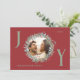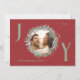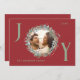 Mit dieser eleganten Joy Weihnachtskarte mit knalligem, rotem Hintergrund und festlichem Grün- und Rotweinblättern, die Ihr Foto prägen, senden Sie Ihren Urlaubswünschen ein. Die Buchstaben "J" und "Y" sind in Salbei grün geschrieben und fügen dem Design eine fröhliche Touch hinzu. Das "O" beherbergt das Foto der Familie im Kranz. Die Karte ist mit Ihren Familiendetails anpassbar und enthält die perfekte Weihnachtsbotschaft im Inneren, was es zu einer nachdenklichen und persönlichen Art macht, die Saison zu feiern.