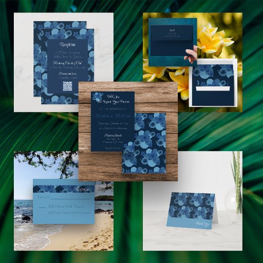 Die Hawaiianischen Inseln sind zweifellos ein Top-Urlaubsziel und ideal für eine Hochzeitsreise. Es gibt so viele Themen, aus denen Sie bei der Planung Ihrer Hochzeit auswählen können. Die tropischen Blume sind wunderschön, egal ob Sie sie in Ihren Bouquets oder in Ihrer Freizeit benutzen. Sie können Ihre Zeremonie in einem Hotel oder am Strand. Was auch immer Sie wählen, Sie werden sicher zufrieden sein mit der Art und Weise, wie es sich herausstellt. Diese tropische Blume aus denim und marineblau rette den Dattelkarten für jede Hochzeit mit hawaiianischem Thema. Sie funktionieren, egal ob Sie eine hawaiianische Hochzeit in Urlaubsort planen oder eine Hochzeitsstatuette mit tropischem Thema haben. Das Design umfasst Hibiskus- und Plumeria-Blume in verschiedenen Denim-Blau-Set-Tönen vor einem marinen Hintergrund. Wählen Sie Ihr bestes Verlobung Foto für die Vorderseite der Karte aus. Auf der Rückseite der Karte finden Sie einige Details zum Hochzeitstag sowie einen QR-Code für weitere Informationen.