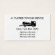 Automotive Schleppen Visitenkarte Vorlage in einem einfachen Design mit einem Flachbett-LKW-Grafik und einfaches schwarz-weiß Layout entwickelt, um online angepasst werden. Erstellt für einen Wracker-Service, Schlepper-Fahrer oder Kfz-Transportdienst.