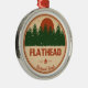 Der Flathead National Forest ist ein Nationalwald im Western von Montana, südlich vom Glacier National Park. Dieses Design zeigt Bäume und Topolinien mit einem Sonnenuntergang.