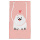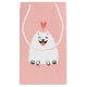 Flaumiger weißer Spitz mit Valentine-Herzen Kleine Geschenktüte