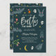 Niedliche Halbblütenschmuckkarte zum Thema Babydusche mit einer Abbildung von niedlichen Fledermäusen, Nachtschattierungen, Schädeln und Sternen. Im Text steht: "Wir gehen schlaflos für das Baby." Ideal für ein Baby, das im Herbst erwartet wird. Der Hintergrund ist dunkelblau.