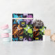 Monströse Fledermaus, Eidechsen, Skorpion und Frosch stalten eine wehrlose Fliege, die vollständig von breiten offenen Mund und scharfen Zähnen umgeben ist. Sie passen in ein farbenprächtiges Dekormuster-Design im lustigen Doodle-Art-Stil