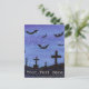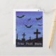Eine Aquarelllandschaft von Fledermäusen, die nachts über einen Friedhof fliegen, schmückt diese individuell gestaltbare Postkarte!
