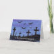 Eine winzige Aquarelllandschaft von Fledermäusen, die nachts über einem Friedhof fliegen, schmückt diese spöttische Halloween-Kundenkarte. Passen Sie den Text an, indem Sie ihn selbst in Anzug umwandeln!