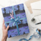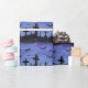 Eine winzige Aquarelllandschaft von Fledermäusen, die nachts über einem Friedhof fliegen, schmückt dieses unheimliche Halloween-Packpapier.