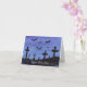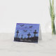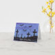 Eine winzige Aquarelllandschaft von Fledermäusen, die nachts über einem Friedhof fliegen, schmückt diese unheimliche Halloween-Karte. Passen Sie den Text an, indem Sie ihn selbst in Anzug umwandeln!