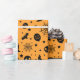 Gelbes Verpackungspapier mit einem niedlich-spöttischen Halloween-Design.