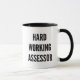 Dieses Textdesign mit dem Satz "Hard Working Assessor" eignet sich perfekt für alle Beurteiler, die hart arbeiten.