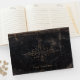 Vintage dunkle antike Buchdecke mit individualisierbarem Namen oder Monogramm unter verziertem Fleurdesign in verblasstem Blattgold.