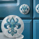 Fleur-De-Lis Blauer Marmor und Perle Keramikknauf