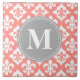 Fleur-De-Lis Coral Pink Gray Monogram Fliese