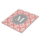 Ein hübsches, lebendiges Korallenrosa und Weiß, Marokkaner inspirierte Quatrefoliengitter mit Lilie-Muster mit einem stylischen, grau-weißen Namenschild für Ihr individuelles Monogramm. Dieses mit Monogramm Designmuster ist ein großartiges Geschenk für Frauen und Mädchen, das helle Muster, moderne geometrische Muster und elegante personalisierte Geschenke Liebe.
