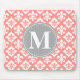 Fleur-De-Lis Coral Pink Gray Monogram Mousepad