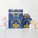Fleur-de-lis-Muster blauer Marmor und Gold Geschenkpapier