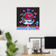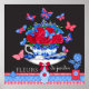 Ein Poster mit einer antiken Porzellantasse gefüllt mit blauen und roten Blume und Schmetterlingen vor einem Hintergrund mit schwarzer Brett. Sieht toll aus wie ein Paar mit Fleur Porcelain Birds und Birdcage Karte. Hübscher französischer Flair!