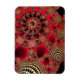Ein glitzerndes Fraktal Design mit verzierten dunklen und lebhaften Rot-Spiralen, überlagert mit goldenen Filigreen wie Metallfässern und mit glitzernden Rubinen bestickt.