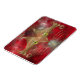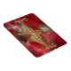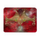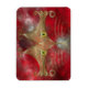 Ein stilisiertes Katzengesicht aus glühenden Goldkurven und -kurbeln, mit breiten grün-goldenen Augen, vor einem Hintergrund aus rotem Fraktal.
