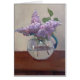 Diese Anmerkungskarte basiert auf der Originalvorlage von Mary Ann Lucas. Sie kennzeichnet einen Blumenstrauß der lila Fliedern in einem runden Glasvase.