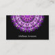 Schöne moderne und saubere Geschäftskarte mit einem lila Mandala als dem Mittelstück. Personifizieren Sie die Details herein über die rechte Seite, oder Klicken fertigt für mehr Wahlen wie Schriftartwahl- und -textfarben besonders an. Diese Geschäftskarte wird Anzug jeder, der "aus dem gewöhnlichen" Entwurf und einem Pop der Farbe heraus mag.