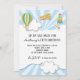 Einladung mit fliegenden Dingen: Heißluftballon, Zweiflieger, Rakete usw. für die Geburtstagsparty eines Kindes.