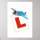 Lernen, niedlichen Cartoon blauen Flugzeug mit einem L Lernplatte zu fliegen.