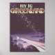Fliegen nach Grönland - Vintages Reiseplakat eines modernen Flugzeugs auf dem Flug nach Grönland.
