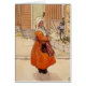 Kleines Mädchen in traditioneller schwedischer Kleidung steht an der Haustür, während Jungs sich um die Ecke des Hauses um sie schauen. Vintage Kunst des schwedischen Malers Carl Larsson.