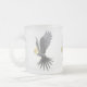 Ein australischer Cockatielpapagei fliegt auf diese mattierte Glaskaffee-Tasse für Vogelliebhaber und -inhaber. Entwurf durch Carolyn McFann zwei des schnurrenden Katzen-Studios.