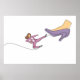 Single eine Zeile zeichnend junge Geschäftsfrau kick Riesenfußbauch Office-Arbeitnehmer fliegen Kick to big high heels Minimal Metapher Konzept Kontinuierliche Linie zeichnete Design Grafik