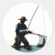 Fliegenfischer mit Angelköder Runder Aufkleber