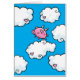 Eine schwarze Grußkartenschablone, die ein entzückendes digitales Cartoonrosaschwein mit den kleinen weißen Flügeln, tanzend auf die Wolken verschönert mit Herzen oben im hellen blauen Himmel kennzeichnet. Fügen Sie Ihre eigene Mitteilung auf dem Innere hinzu, um es jede mögliche Gelegenheit zu machen!