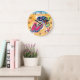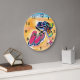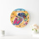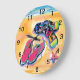An original painting by Anne Ormsby of flip-flops on the beach adorns this colorful wall clock.