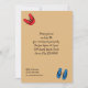 Das skurrile Muster dieser Einladung besteht aus Flip Flops in den Primärtönen Rot, Blau und Gelb, die mit locker gewebten, sandfarbenen Streifen mit schwarzen Akzenten auf der einen Seite und einem sandfarbenen Hintergrund auf der anderen Seite aufgereiht sind, die sich perfekt für die Sommerbecken- oder Strandbäder oder für den amerikanische Unabhängigkeitstag eignen.