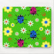 Funky Marienkäfer, die herum unter den Blumen im Garten rennen.