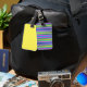 Flippiger blauer gelber und rosa gestreifter gepäckanhänger