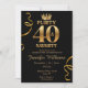 flirty 40 and naughty, gold black chic 40 birthday Invitation