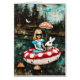 Die Fantasy-Collage Alice und das weiße Kaninchen auf einem Floattrip durch einen Fluss mit Pilzen wachsen auf den Ufern