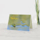 Ein kleiner grüner Frosch schwimmt an einem heißen Sommertag im Teich. Der reine blaue Himmel und die umliegenden Bäume spiegeln sich im Wasser wider.