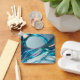 Abstrakt von durchsichtigem, blauem Glas gebildet in Schleifen und Kurven wie schwimmende Wasserläufe tanzen vor einem neutralen grauen Hintergrund. Eine flache Feldtiefe verleiht dem Glas dreidimensionale Reichweite. Das Bild drehte diagonal auf der Rückseite. KI erzeugt.