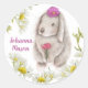 Mit diesen niedlichen Namensschildern, die mit einem Floppy-Hasen und Gänseblasen versehen sind, können Sie die Gegenstände Ihres Kindes sicher behalten haben. Ideal für Bücher, Geräte und Zubehör. Handillustriert von Lesley Smitheringale bei Hush the Moon.