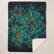 Desenho com fundo escuro semelhante a flores que foi submetida a diversos efeitos gráficos e ficou parecendo algo surreal que lembra algo de vidro de cor azul metálico e de partes douradas e que foram parcialmente trituradas.